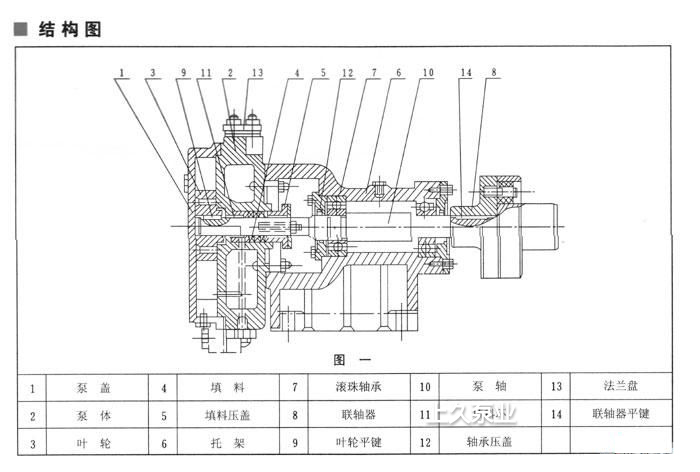 由鑄鐵制成葉輪(3),有12個(gè)葉片呈放射狀均分布,有平衡孔(其中兩個(gè)套扣供拆卸用)平衡軸向力。葉輪平鍵(9)與軸(10)聯(lián)接并可沿軸向滑動(dòng)調(diào)節(jié)間隙。軸為鋼制成.支承在泵的托架(6)內(nèi)的兩個(gè)滾珠軸承(17)上右端有彈性聯(lián)軸器(8)和電機(jī)直接聯(lián)接。托架(6)用鑄鐵制成.有止口保證與泵體聯(lián)接,軸承間有空腔,可存潤(rùn)滑油,用稀油或齒油滑均可。