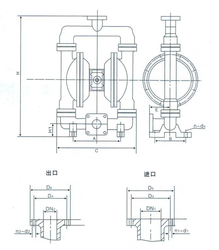QBY型氣動(dòng)隔膜泵安裝尺寸