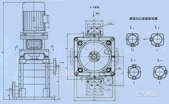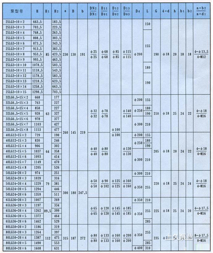 LG型高層建筑多級給水泵安裝尺寸圖: LG型高層建筑多級給水泵安裝尺寸表: