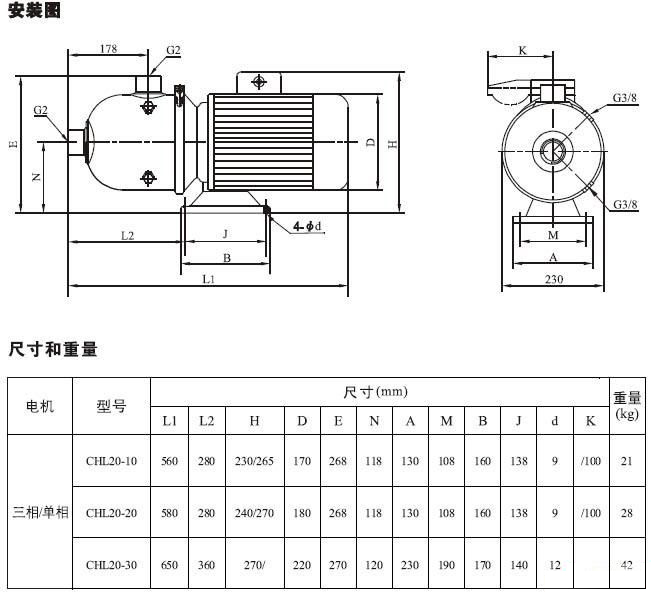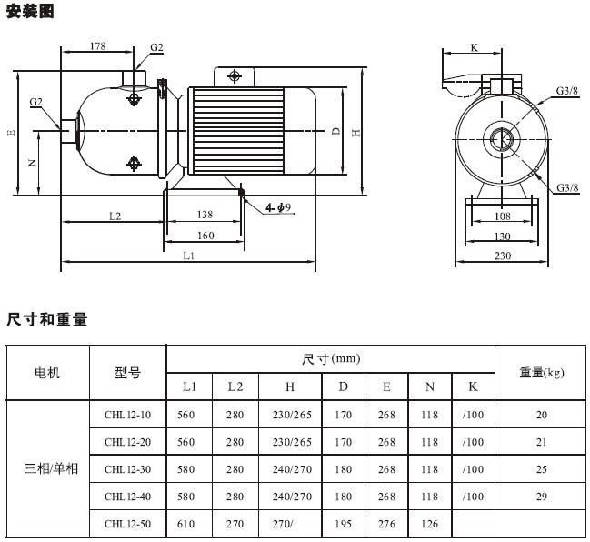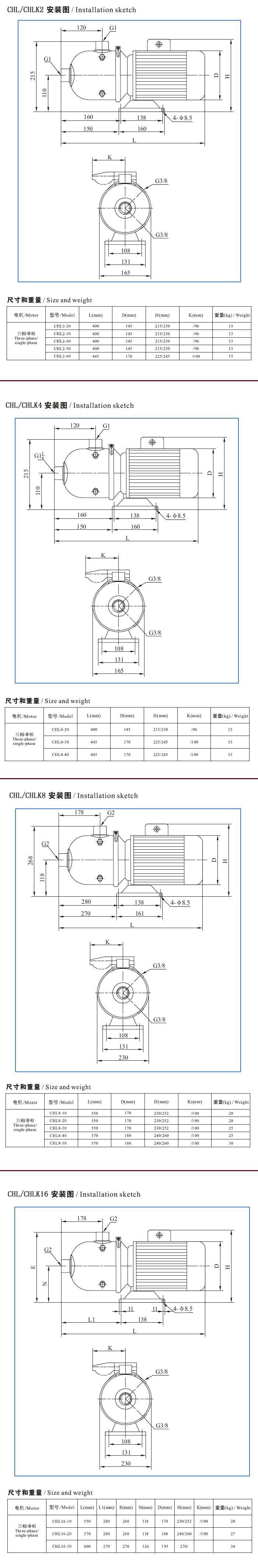 CHL,CHLK輕型不銹鋼多級離心泵(安裝尺寸)
