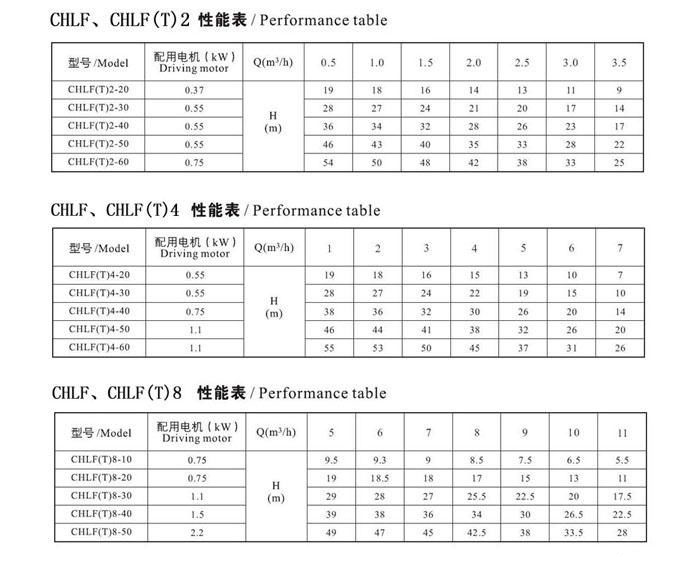 CHLF,CHLF(T)輕型段式多級(jí)離心泵(性能參數(shù))