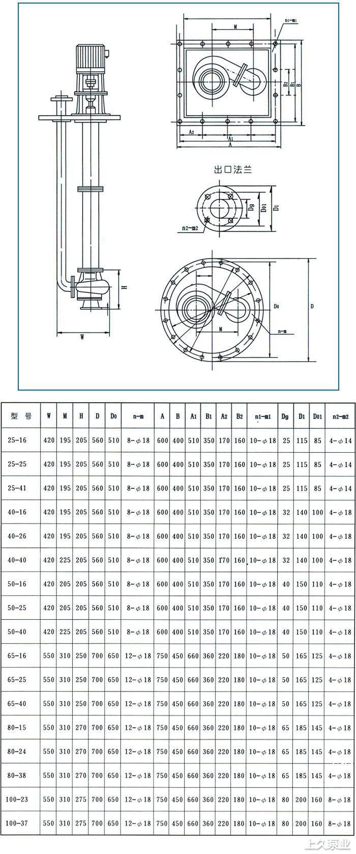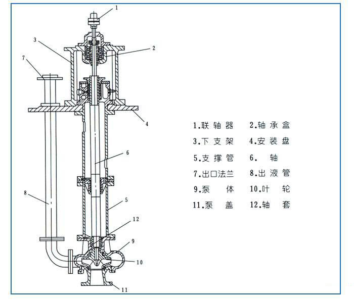 FY系列液下泵結(jié)構(gòu)圖: FY系列液下泵安裝尺寸: