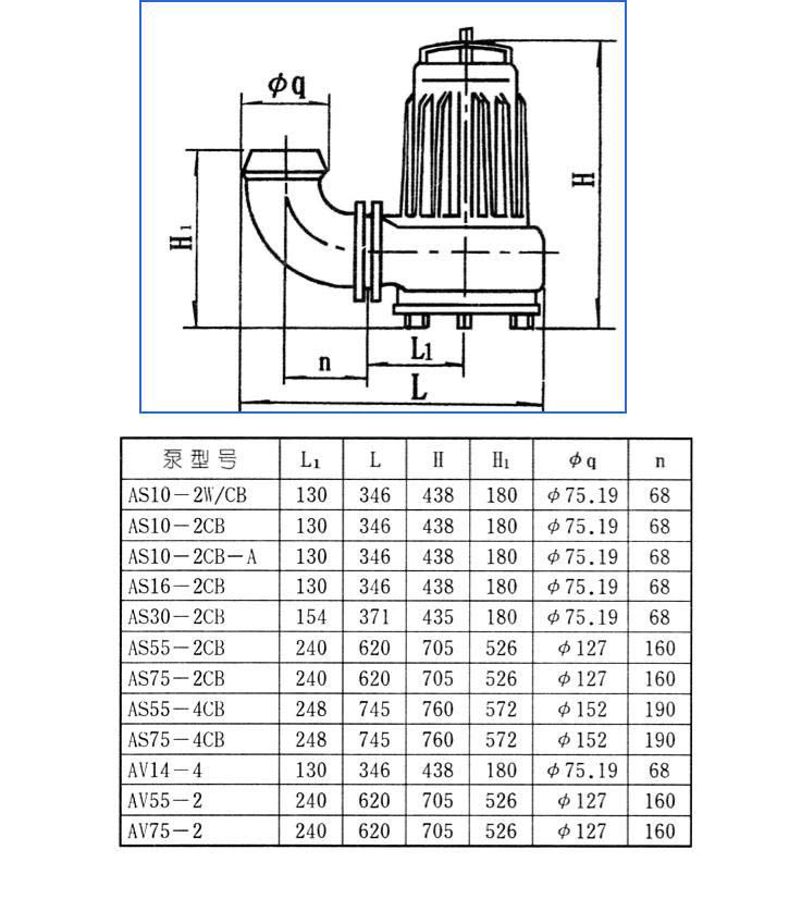 AS、AV型潛水式排污泵外形尺寸: