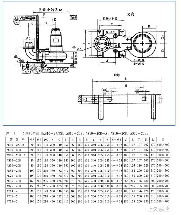 二、AS、AV型潛水式排污泵安裝尺寸: