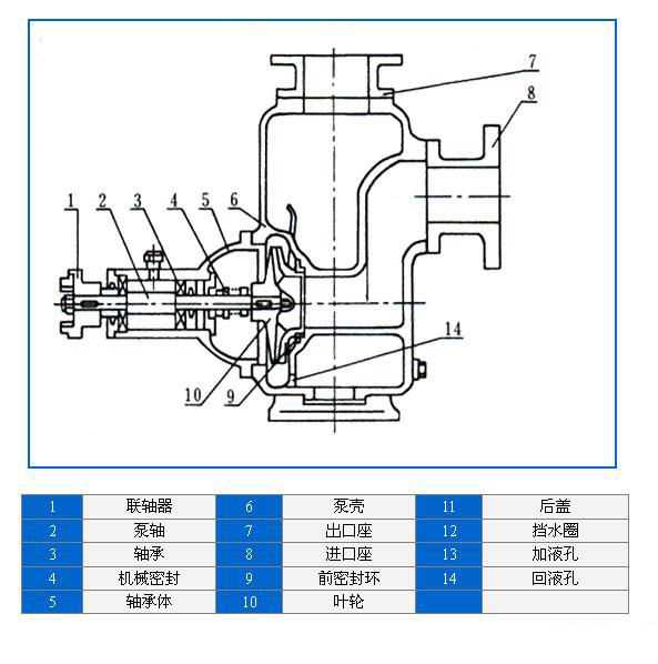在一些泵的軸承體底部還設(shè)有冷卻室。當(dāng)軸承發(fā)熱引起軸承體溫升超過70℃吋.可在冷卻室處通過任意一只冷卻液管接頭.注入冷卻液循環(huán)冷卻。泵內(nèi)部防止液體由高壓區(qū)向低壓區(qū)泄漏的密封機(jī)構(gòu)是前后密封環(huán).前密封環(huán)裝在泵體上.后密封環(huán)裝在軸承體上,當(dāng)泵經(jīng)長(zhǎng)期運(yùn)轉(zhuǎn)密封環(huán)磨損到一定程度,并影響到泵的效率和自吸性能吋.應(yīng)給予更換。