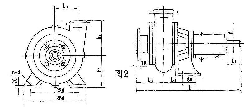 一、PW、PWF型耐腐蝕污水泵外型尺寸 圖2