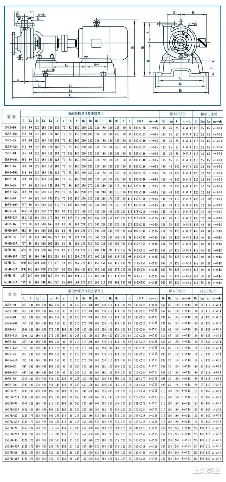 FB、AFB型耐腐蝕離心泵安裝尺寸: