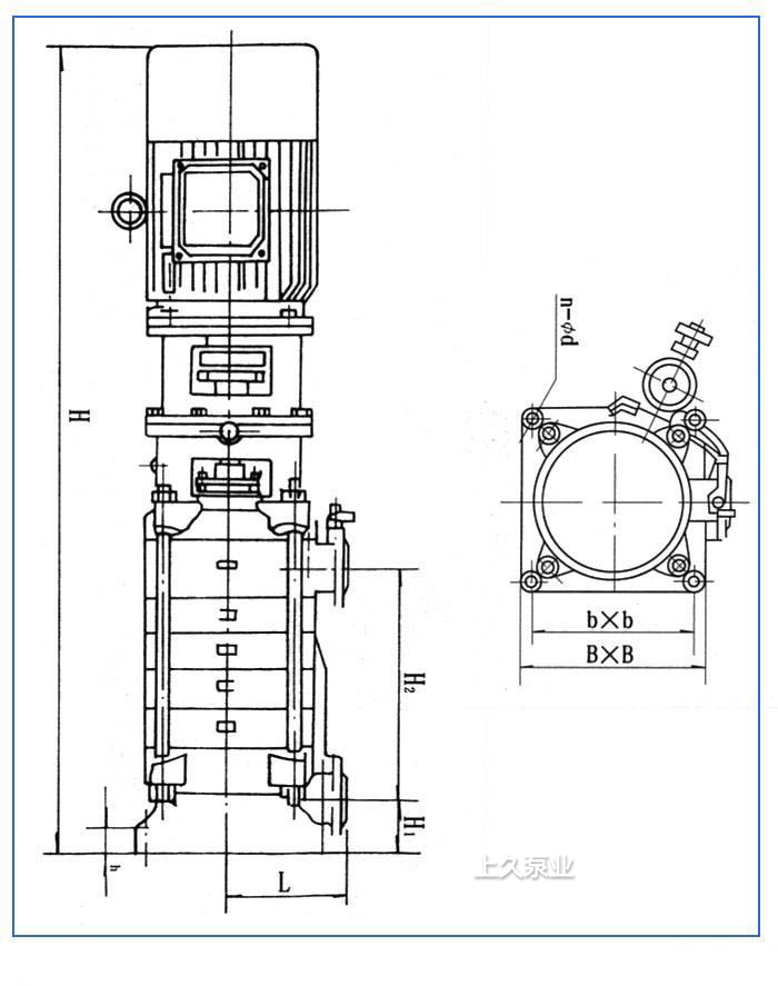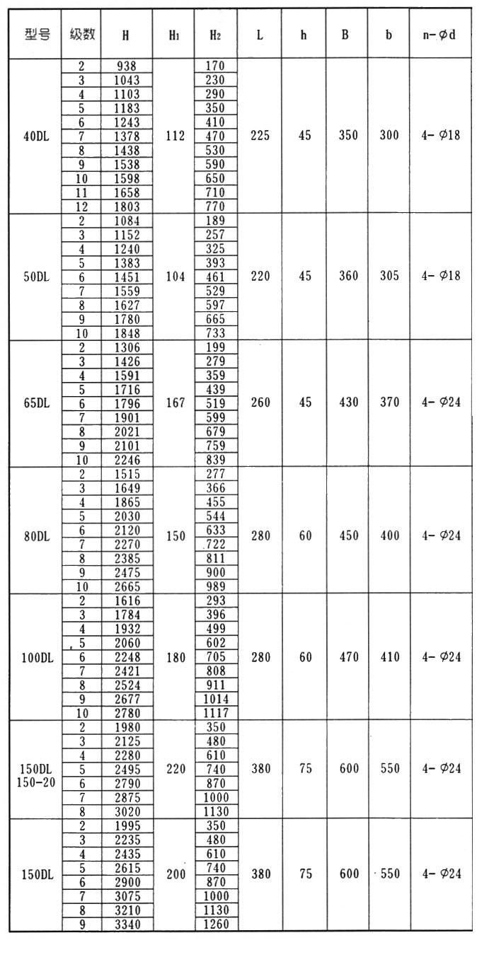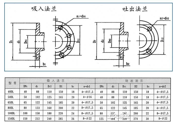 DL系列立式多級離心泵安裝尺寸圖: DL系列立式多級離心泵安裝尺寸表: DL系列立式多級離心泵法蘭安裝尺寸: