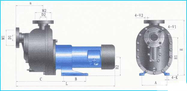 一、ZMD型(ZCQ-F型)四氟自吸磁力泵外形安裝尺寸圖: