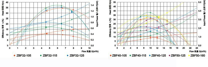 一、ZBF型自吸式塑料磁力泵性能曲線