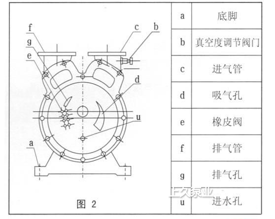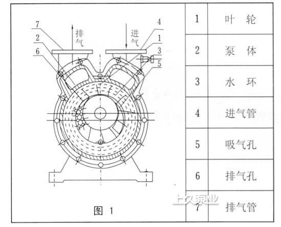 如此葉輪每轉(zhuǎn)動(dòng)周,葉片間的空間容枳改變一次,每個(gè)葉片間的水好象活塞一樣往復(fù)一次,泵就連續(xù)不斷地抽吸氣體。